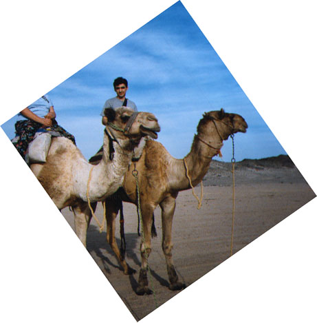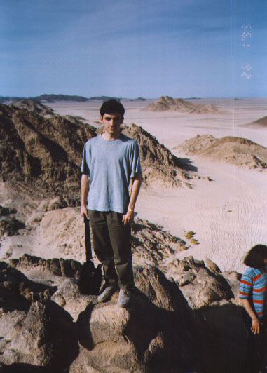 the Egypt... 01/26/99 ...A day after our arrival to Egypt my brother and i went on safari. We were taken to a bedouins village through the Sahara desert (egypt01.jpg). During the travel over sun dunes the jeeps shaked us very much to give the maximum of pleasure. In the bedouins village we were welcomed (egypt02.jpg), regaled with tea, allowed to ride a camel (egypt03.jpg). There was an under-stars disco at night, including the bedouin national dances.
