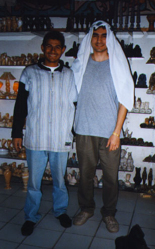 01/27/99 Next day we went shopping to Hurgada (our hotel was near this town). People in Egypt are very good, so we made friends with one of the merchants in some time (egypt04.jpg). When we were back to Moscow, we sent him this photo and a letter, and he answered us in 2 months. During the time we were in Egypt, we were to his shop often, chatting to our friend and buying some goods for small price.
