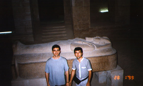 The most ancient area in Egypt is Luxor. It is an Egypt ex-capitol.One of the most interesting temples there is Karnak Temple(egypt05.jpg). Its first hall was built over 4000 years ago! Most rooms there were destroyed by time and different conquerors. Luxor is devided by Neil into two parts. The first one is called "The city of dead" and the last one - "The city of living". Egypt06.jpg figures me, my brother and our guide standing on the bridge over the Neil. The city of the dead is to the left, and the city of the living is to the right. While the Karnak Temple is in the city of the living, an enourmous amount of tombs are located in the city of the dead. We visited some of them (egypt07.jpg - pharaoh Meri Ishbitah's tomb).