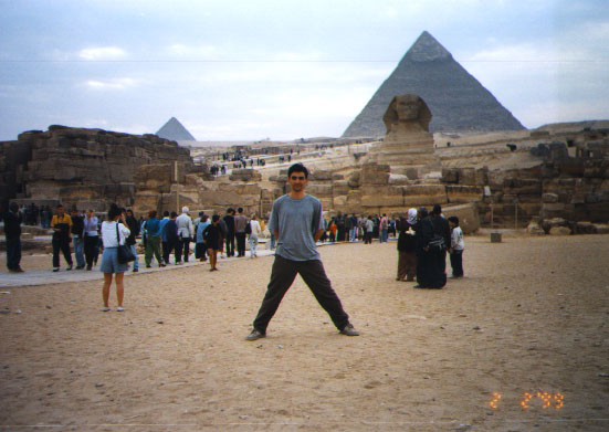 02/02/99 Cairo (egypt08.jpg) is one of the biggest cities in the world (over 20 millions citizens). The mosque of Mohammed Ali (egypt09.jpg) is the part of the Citadel of Salah al-Din, which is located in Cairo. It is the main mosque of all moslems in the world. When they are praying,they must face this mosque, wherever they are. The most famous Egyptian pyramids and Sphinx are located in Geeza (just near the Cairo). You can see me on a Heopsis piramid (egypt10.jpg) and near two piramids (egypt11.jpg).