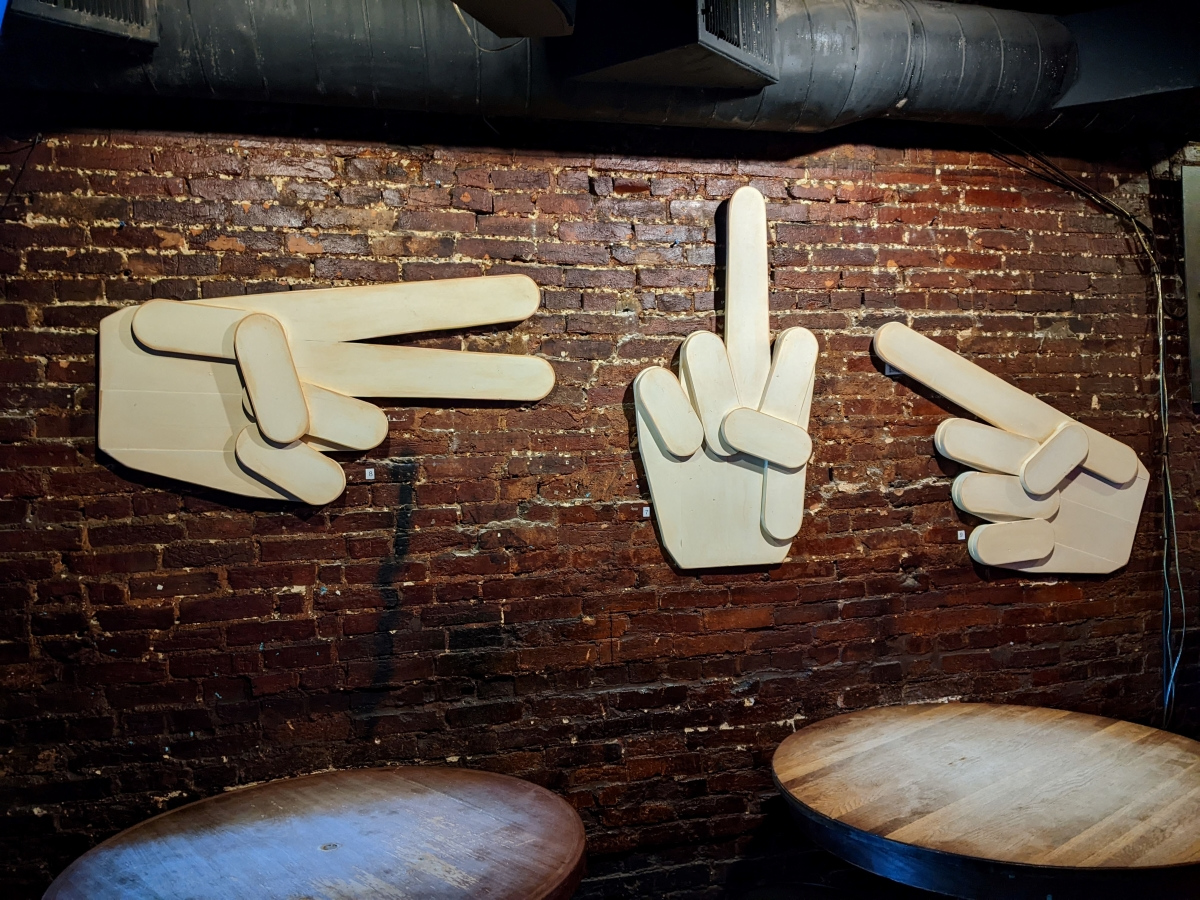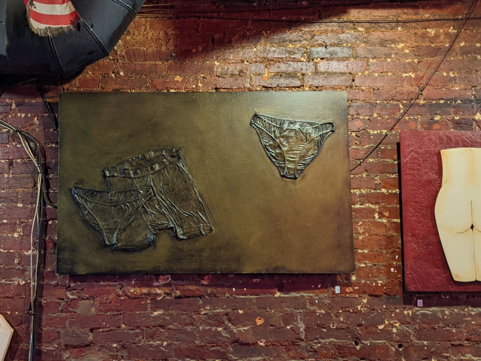 That said, the 2026 version of Out of Order was an improvement over recent years. To me, the art on walls seemed to be more evenly balanced. Also noticed, there were many more smaller “sculptures” than normal, pedestals were all over the place. A big surprise were pizza boxes from HomeSlyce Pizza! It was a free-for-all grab-a-slice swarm. They went quickly but I spotted another round of pizza delivered a bit later. As usual, the upstairs provided beer, wine, non alcoholic drinks as well as water. You could have a smoke outside, but MAP needs to put an ash bucket or something to catch all the butts. Crowds were very good throughout the evening. Haven’t heard yet about sales. For those that don’t know, it’s an online and live auction. I miss the old days when you could scratch down your bid with a pencil and keep an eye on it to see if you’ve been outbid but unfortunately collecting the funds after the auction became an issue, but it was fun while it lasted (20+ years). The Basement is where you want to relax and get away, seating, tables and a real bar. All in all a fun evening, will probably do it again. Enjoy the photos…