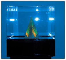 Kinetic Polka Dot 1969 - 12”x12”x16”- Acrylic Pyramid is contained inside a box. There are moving lights and shapes, which reflect inside the pyramid.